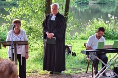 Die Waldgottesdienste in unserer Kirchengemeinde sind etwas Besonderes, vor allem in der Hinsicht, dass sich die Kirchengemeinde Wiebelskirchen als einladende Gemeinde sieht. Es ist mittlerweile schon zu einer Tradition geworden, was anfänglich als Versuch gestartet wurde: Unsere Waldgottesdienste am Fischweiher. Diese finden nun zweimal jährlich statt, einmal vor und einmal nach den Sommerferien. Gestaltet wird der Waldgottesdienst vom Gottesdienstausschuss unter Leitung von Pfarrer Friedrich Hehl. Die Besucherzahlen beim Waldgottesdienst sind immer erfreulich hoch, wodurch sich die Beliebtheit innerhalb und auch außerhalb der Kirchengemeinde zeigt.
